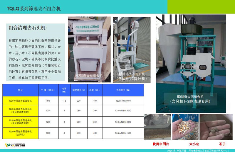 九游会j9生产的TQLS系列组合清理去石机,该系列组合型清理去石机整合风机、振动筛、去石机为一体的粮食清理设备,常应用于粮食加工中清理去除大中小杂、石头以及轻杂。其中TQLS-45型清理去石机常应用1吨下粮食清理,而TQLS-85组合清理去石机,精工制作常应用于30吨左右粮食加工生产线的前段清理工序。